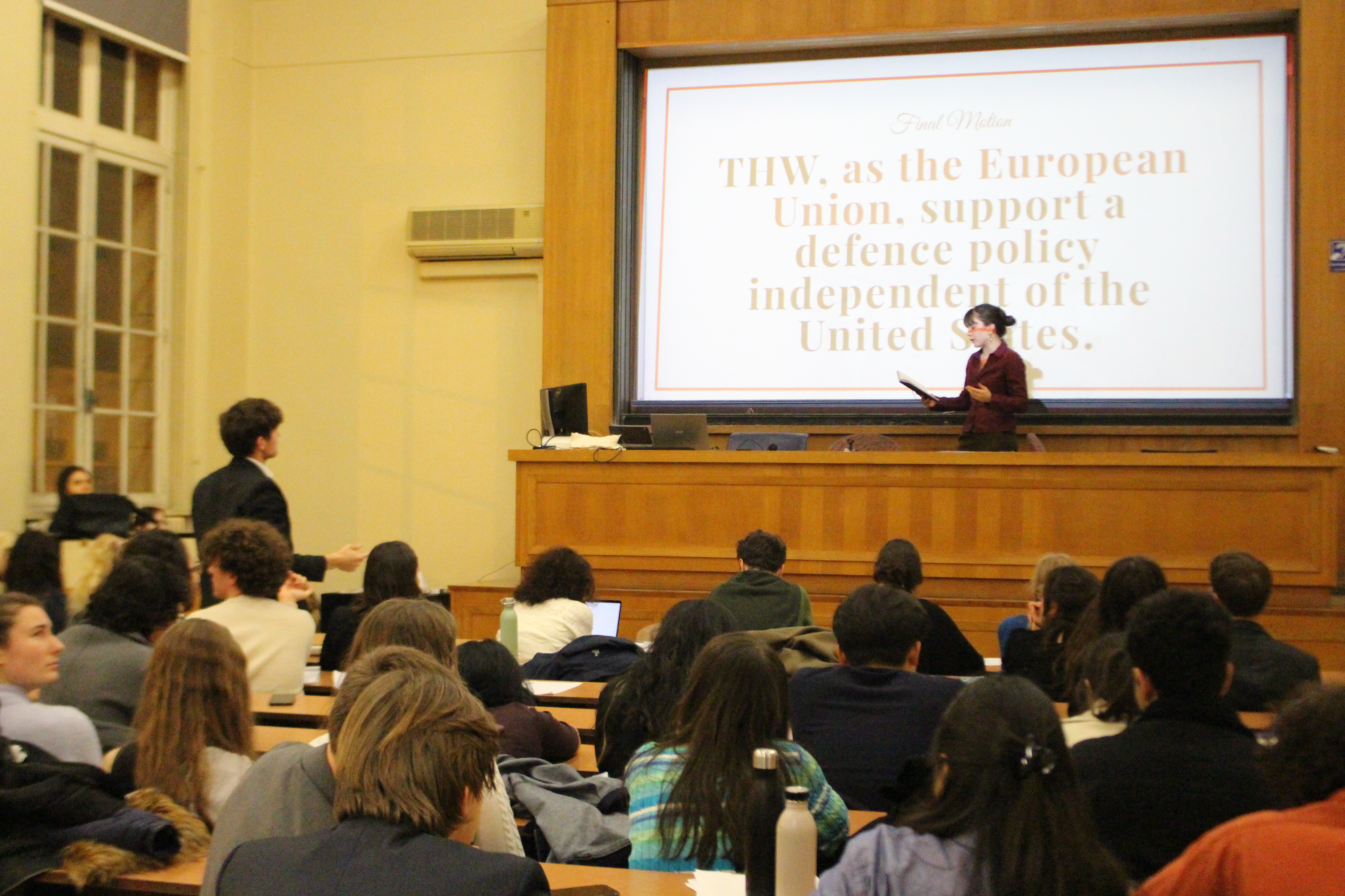 Après près de deux heures d’échanges passionnés autour de la motion : « cette Chambre, en tant qu’Union européenne, soutiendrait une politique de défense indépendante des États-Unis », le délibéré des juges a donné la victoire à une équipe de Centrale-Supélec, tandis que le titre de Meilleur orateur a été décerné à un débatteur issu de l’École Polytechnique.